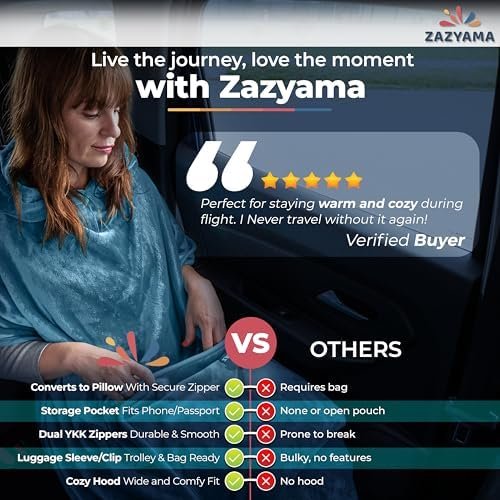 Every detail is designed with purpose: 3-in-1 blanket and pillow, soft fleece, hidden pocket, and portable design. Zazyama blends comfort, freedom, and style in one travel companion.