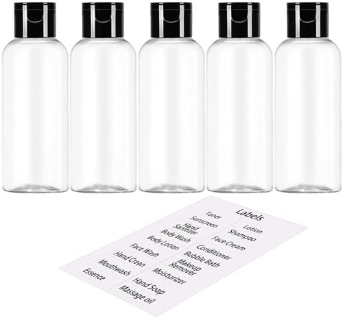 Convenient Travel Set: This pack includes 5 empty refillable travel size bottles with black flip caps, perfect for carrying your toiletries while on the go.