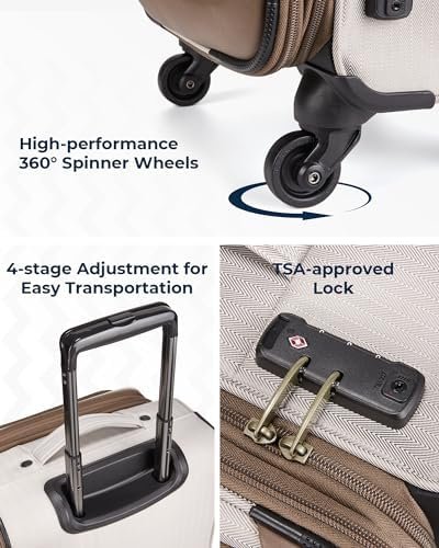 All In The Details: The 2-step ergonomic aluminum handle adjusts to multiple heights, while the 360° spinner wheels provide a sturdy base for smooth gliding, even when fully packed. Navigate through busy terminals, upgrade your travel experience.