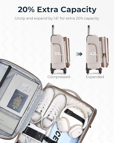 Effortless Expandable, Extra 20% Room: Unlock new possibilities with our expandable suitcase, offering an additional 2 inches of packing space, unleashing the potential of hard shell luggage with an extra 20% packing space, Volume 35L to 42L—say goodbye to cramped travel and hello to comfort.