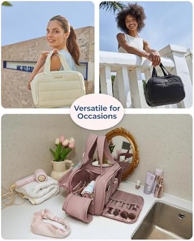 Easy Access and Keep Upright : Full opening and not piling up for easy access to items. Double side full open design of travel bag keeps cosmetic bottles and toiletries can stand upright in the middle compartment. Avoid leakage during transit