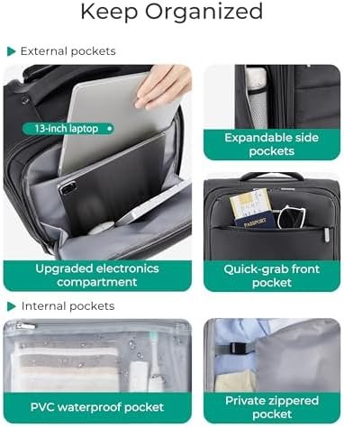 CEO-Level Organization: Dedicated 13″ laptop compartment and multiple compartments sort outfits from adapters. Waterproof zone for damp items. This carry-on suitcase turns packing panic into precision.
