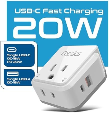Charge 4 devices at once: 2 USA input 1x USB & 1x USB-C (total max 3 1a) perfect for charging cell phone camera laptop Tablets iPads iPhones Kindle chargers CPAP and power bank & more