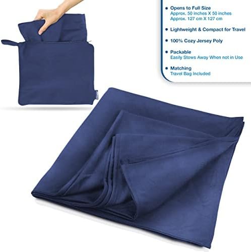 Introducing our NEW Jersey Travel Blanket in A Bag By Clöudz – A Trusted Brand for over 20 Years! Stay Warm and Cozy while Traveling, at Home, in the Office, at Sporting Events, or just Enjoying the Outdoors. Snuggle in the Cozy Warmth of a Blanket while Relaxing with the Soft Feel of a Tee Shirt. Opens to a Generous Size of 50″ x 50″. A Lightweight & Compact Travel Solution. Not as Heavy and Bulky as Fleece. Includes a Convenient Travel Bag for Easy Storage when not in use.