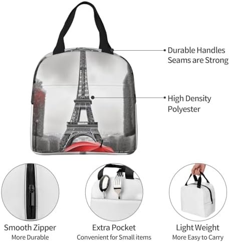 Keep You Food Fresh: The Eiffel Tower with Red Umbrella cooler lunchbox bag can keep food warm and fresh for a long time, keep your drinks cold, don’t worry about food spoilage, it’s like a good assistant for your life