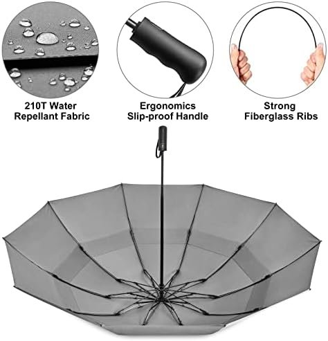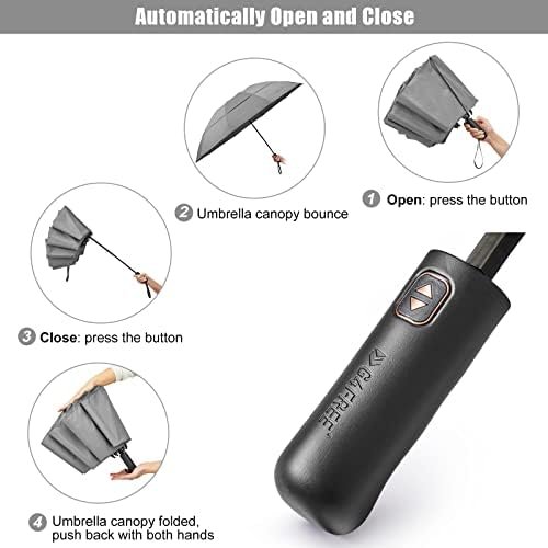 Auto Open & Close: Our folding umbrella is designed with a fully automated system, perfect for 1 hand operation. You can quickly open or close the umbrella at the press of a button. This large umbrella also comes with a sleeve for easy storage.