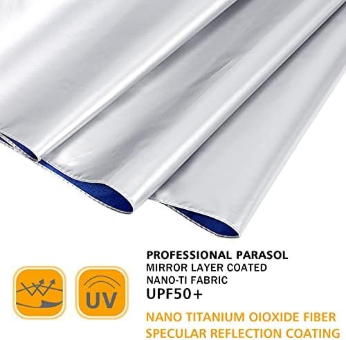 UPF 50+ Sun Umbrella: Silver coating layer fabric reflects heat to cool you down; UPF 50+ high UV rated blocking 99.9% of the harmful UVA and UVB solar rays, protects your skin in the sun. Keep you cool in the sun and safe in the rain.