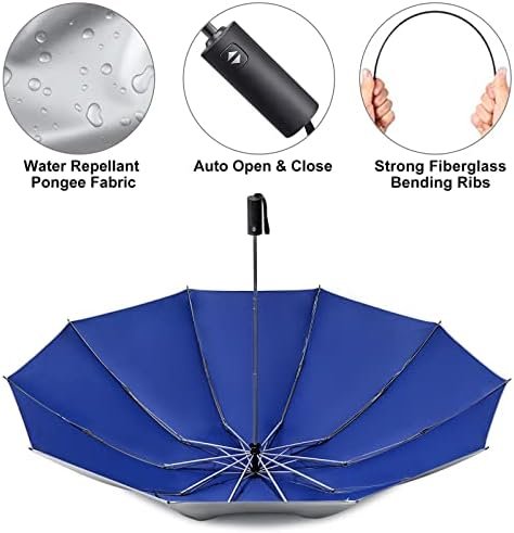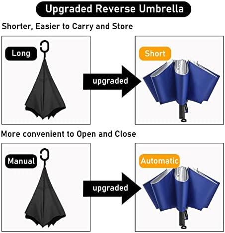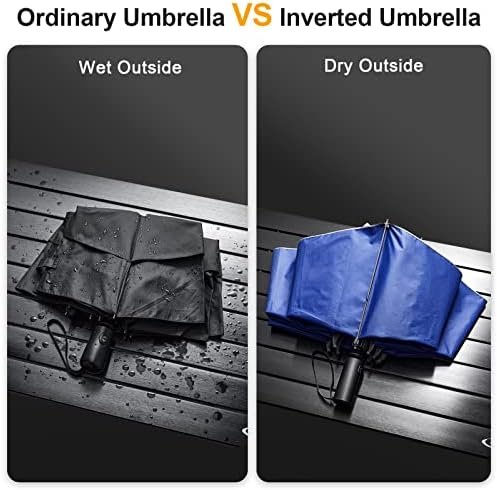 Inverted Folding Design: This upside-down umbrella takes an inside-out design. When you close it, the wet part will be inside of the umbrella, preventing water from dripping, and it will not get you wet when getting in and out of the car. You don’t even need to worry about this automatic travel umbrella will wet your floor and mat.