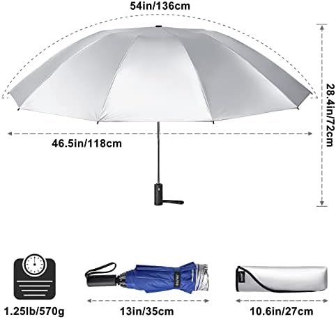 Large & Compact Travel Size: This compact UV umbrella is 54” in arc canopy, 46.5” in diameter, lightweight as 1.25 lb, can be collapsible to 13”, small size for easy storage in briefcases, backpacks, luggage, and more. The wrist loop is portable to take and it comes with an umbrella case to store.