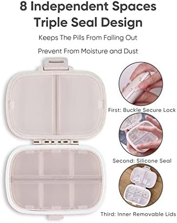 Double Lock: The travel pill box comes with an inner lid that doesn’t pop open even if dropped, the outer lock can be closed tightly without worrying about the pillbox opening on its own, and the removable silicone sealing ring and the inner lid make cleaning more concise and convenient