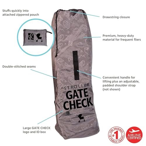 GATE CHECK STROLLER BAG – The J.L. Childress Deluxe Gate Check Travel Bag bag fits most umbrella strollers and offers protection for families on the move. Measure your stroller before purchasing
