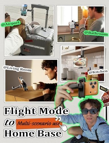 Travel 75% lighter.:This upgraded 2025 airplane phone holder combines a light, strap, and universal mounts for mics and tripods—so you can create freely with less baggage.