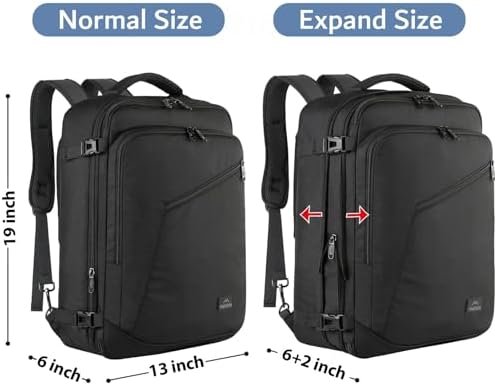 Expandable & Large Capacity: This extra large travel backpack with expandable feature offers you more packing capacity. Unzipping to get 45L storage then can easily hold packing cubes, make-up bag, outfits, camera bag and gear, etc. It fits overhead bin while on state of standard carry on size, is suitable for men, women, weekend traveler, or occasional vacationer. This versatile luggage backpack also meets airline carry-on requirements for airlines such as Easy Jet, Spirit, Jet Blue