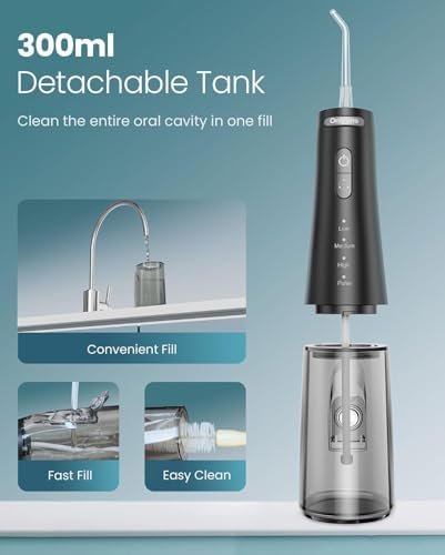 BPA-Free and Upgraded 300ml Large Water Tank, Less Refilling Needed: Our water dental flosser now features a larger 300ml water tank, double the capacity of older models. With less need for refills, it makes your oral cleaning more convenient and efficient
