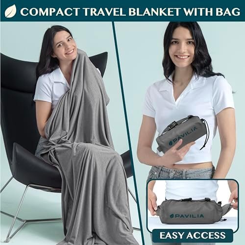 FOLDABLE COZY AIRPLANE BLANKET The travel blanket comes with a soft waterproof carrying case, which is designed with a handy strap and drawstring closure design for easy storage. This blanket is versatile for hiking, camping outdoors, road trips, watching movie or watching sports at the stadium. This lightweight plane blanket is an international travelers essential and airplane attendants favorite, a must have for both weekend travel trips and long flights.