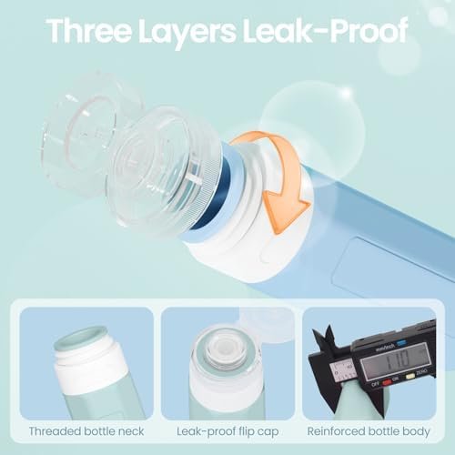 3-Layer Leak-Proof & No-Drip Design Travel Containers: Our travel size bottles adopted 3-layer sealing structure and sturdy flip-top lid, these refillable shampoo and conditioner bottles prevent leaks, spills, and mess under pressure and ensure precise dispensing without waste. TSA-approved travel size bottles are packed in a clear handy bag which is barely take up space in your suitcase,definitely a ideal travel size containers for toiletries