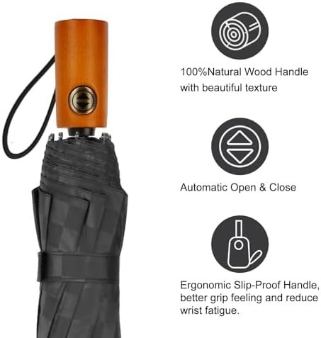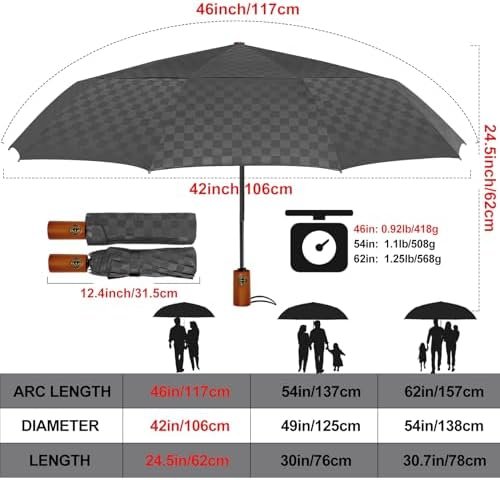 【Lightweight & Portable】Our black travel umbrella is light, weighing only 0.92 lb / 418g and suitable for men, women and children. The compact umbrella is foldable which converts it to 12.4’’ in size. This helps with portability and storage, which allows it to be carried in a bag, backpack, school bag or briefcase.