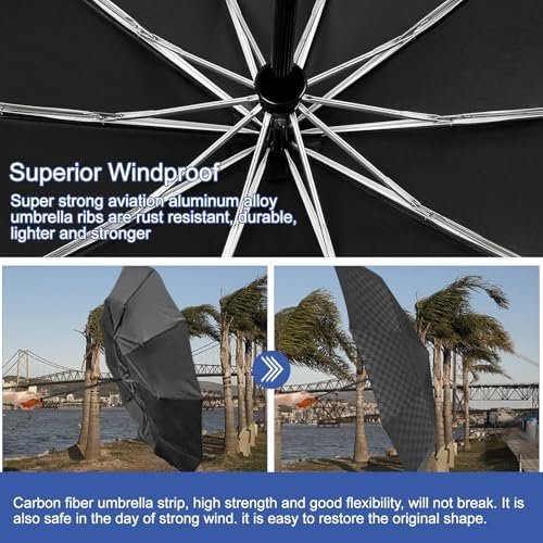 【10 Aluminum Ribs Strong & Sturdy】The umbrella has 10 Aluminum ribs, creating a super strong frame construction, provide extra strength. Our golf umbrella is made of Aluminum, which is a long-lasting material and lightweight. Furthermore, it can bends without forfeiting strength. This ensures stability in the harshest weather conditions.