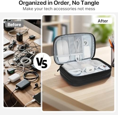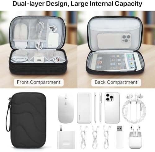 Double-Layer Design: Unlike traditional tech organizer pouch, this electronic travel organizer has two separated layers of construction, and the spacious interior structure features elastic bands, zippered mesh pockets and soft cotton to protect accessories from scratches and abrasions, providing you pleasure while on the go. Allowing you to efficiently organize your cords, kindle, cables, phones, chargers, mice, flash drives, power bank and other electronics for various storage needs