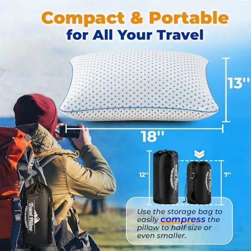 Versatile for Every Need – Designed for travel, camping, and hotel use, small pillows for sleeping double as neck pillow, knee pillow, lumbar support pillow, toddler pillow, maternity pregnancy pillow, beach pillow or throw pillow. It’s ideal for outdoor adventures like backpacking, hiking, fishing, or beach trips, as well as indoor relaxation in airplanes, cars, tents, or hammocks.