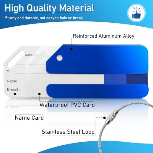 Material: Baggage tags made of aluminum material, sturdy and reliable, not easy to break or fade, and lightweight for wearing, will not burden you and will not take much space