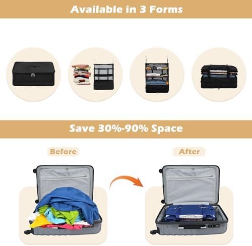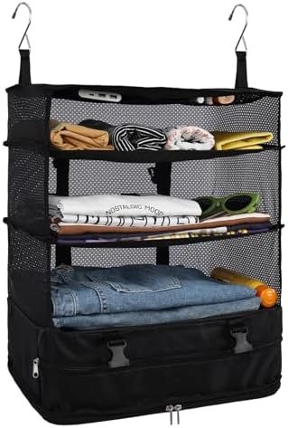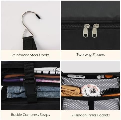 Foldable Design: When traveling or on a business trip, Double-sided zipper that can be opened easily, you can put your luggage in and fold it up to facilitate the organization of your luggage. You can also use a strong stainless steel hook to hang it in the wardrobe or bathroom