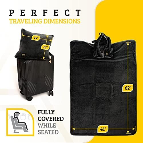 ✈ Game-changing travel pillow blanket with Hoodie – If you need an airplane pillow or an airplane blanket to be cozy on long rides, we’ve got you covered! Our warm fleece blanket will satisfy all the comfort aspects of traveling by combining a soft blanket and a travel pillow into a perfect travel blanket with a hoody