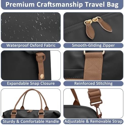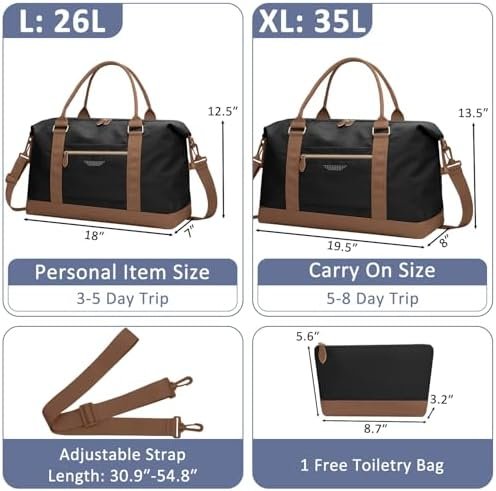 Premium Upgraded Fabric & Free Toiletry Bag: These travel duffel bags are made of tear-resistant and water-resistant polyester Oxford material, featuring heavy-duty stitching and reinforced straps. Designed for long-term use, they have held up perfectly through multiple trips. This womens duffle bag comes with a free toiletry bag, perfect for storing cosmetics or small travel essentials, easy to help keep things better organized.