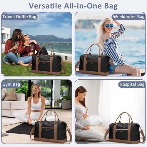 Sturdy & Convenient Carry: Our duffel bags for traveling are designed with smooth-gliding dual zippers, allowing easy access from both sides for added convenience. The reinforced handles are sturdy enough for heavy loads, comfortable to hold and easy to carry. These travel duffel bags for women feature an adjustable and enhanced shoulder strap for comfortable carrying.The detachable strap offers versatility—wear it over the shoulder or crossbody to suit your needs.
