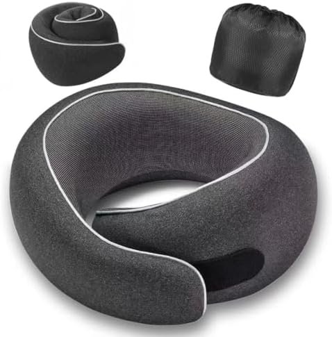 Premium Memory Foam Neck Pillow: Made of high-quality memory foam with slow rebound technology, this travel neck pillow provides long-lasting durability, excellent resilience, and all-day comfort.