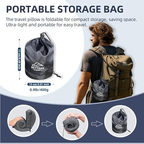 【Compact Design】Lightweight and easy to roll up into its carrying pouch, this airplane pillow with hood is a top choice among plane neck pillows for long flights. Slip it into your carry-on for convenient comfort on the go—perfect for road trips, camping adventures, or weekend getaways