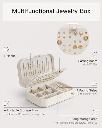 Ideal Dimensions and Easy to Carry – This compact jewelry organizer boasts a robust construction with an adorable design, measuring 6.3 x 4.6 x 2.2 inches. It’s spacious enough to accommodate your jewelry collection while remaining compact to conserve space. Weighing a mere 9.45 ounces, it’s exceptionally lightweight, making it perfect for tossing in a suitcase or slipping into a drawer, offering supreme convenience for travel.