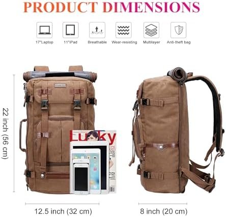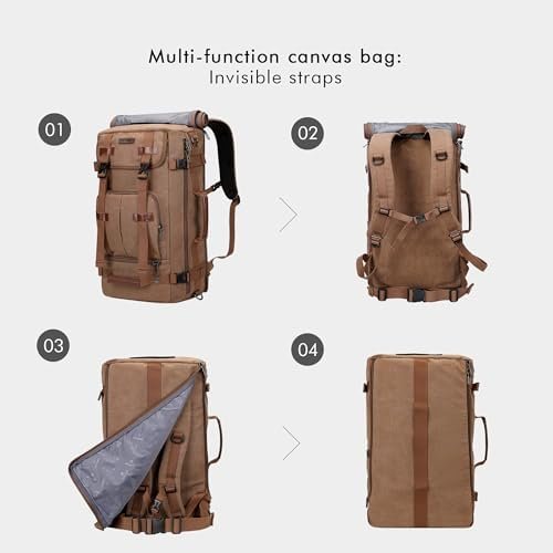 Convertible Backpack : This canvas travel backpack can be used as backpack, tote bag, and crossbody bag with a shoulder strap; And there is a zipper pocket on the backside that you can hidden the backpack strap when you carry this bag as tote bag or crossbody bag. Without puzzle of having those backpack strap hanging uninhibitedly.